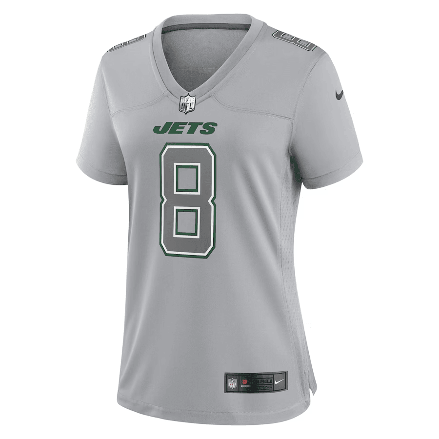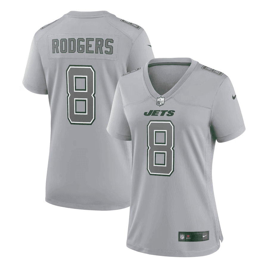 Aaron Rodgers 8 New York Jets Women Atmosphere Fashion Game Jersey – Heather Gray