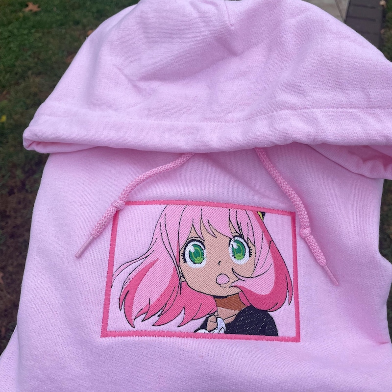 anime embroidered, sweatshirt, embroidered anime shirt, embroidered hoodie, anime inspired spy anime manga