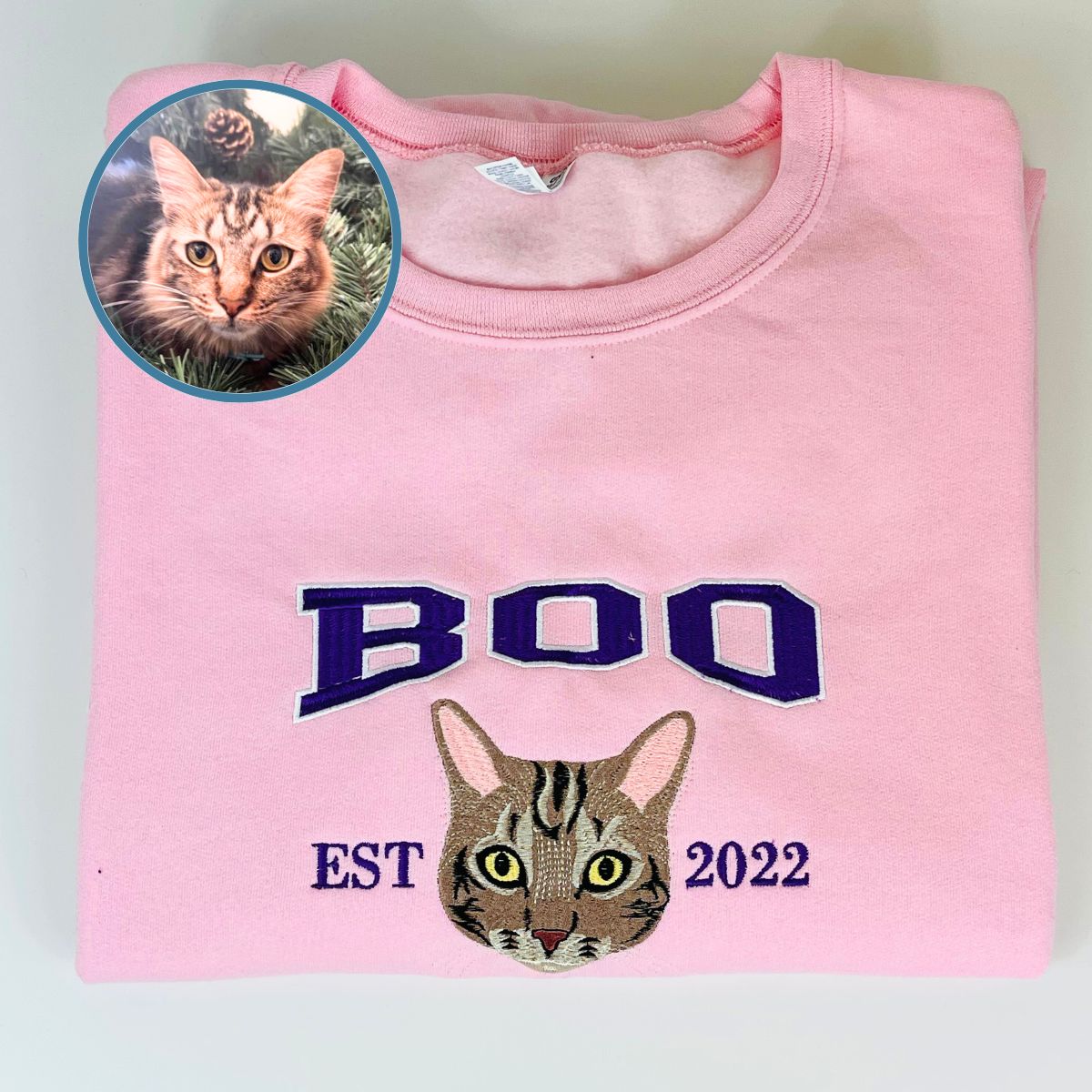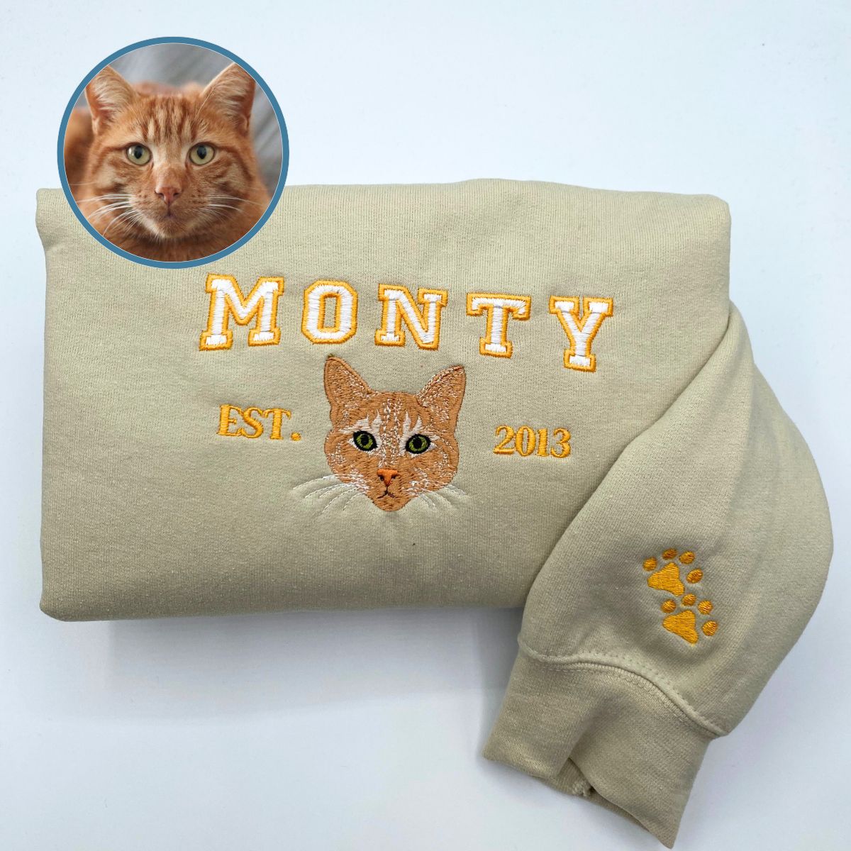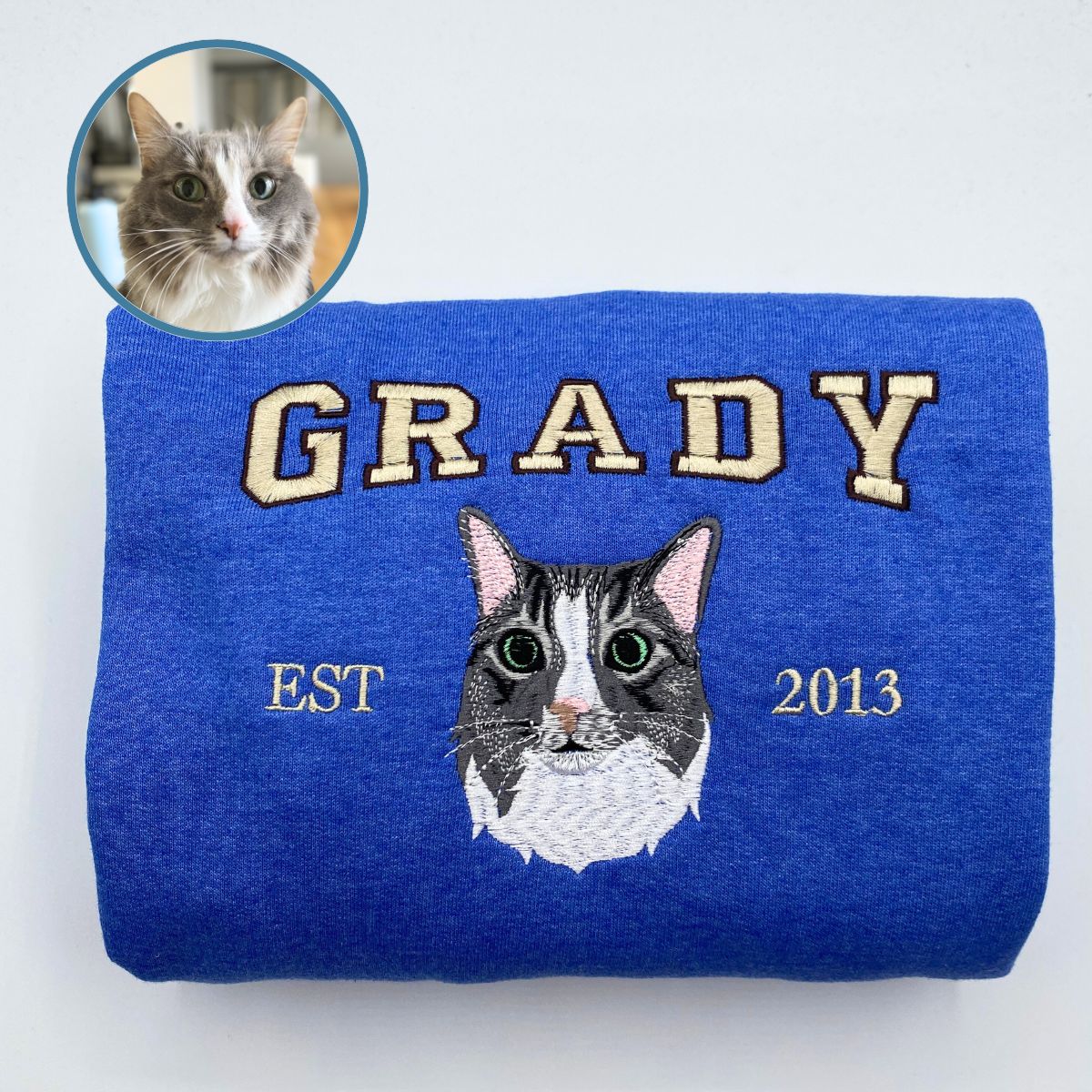 Custom Full-Color Varsity Cat Face Embroidered Sweatshirt