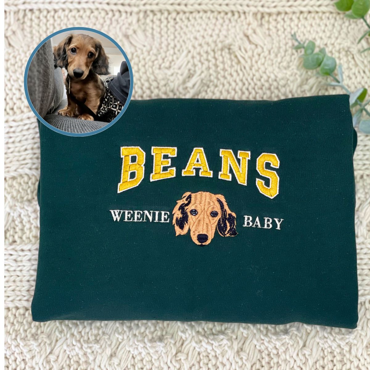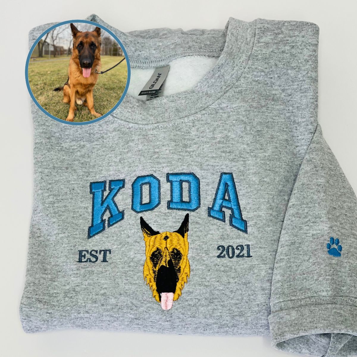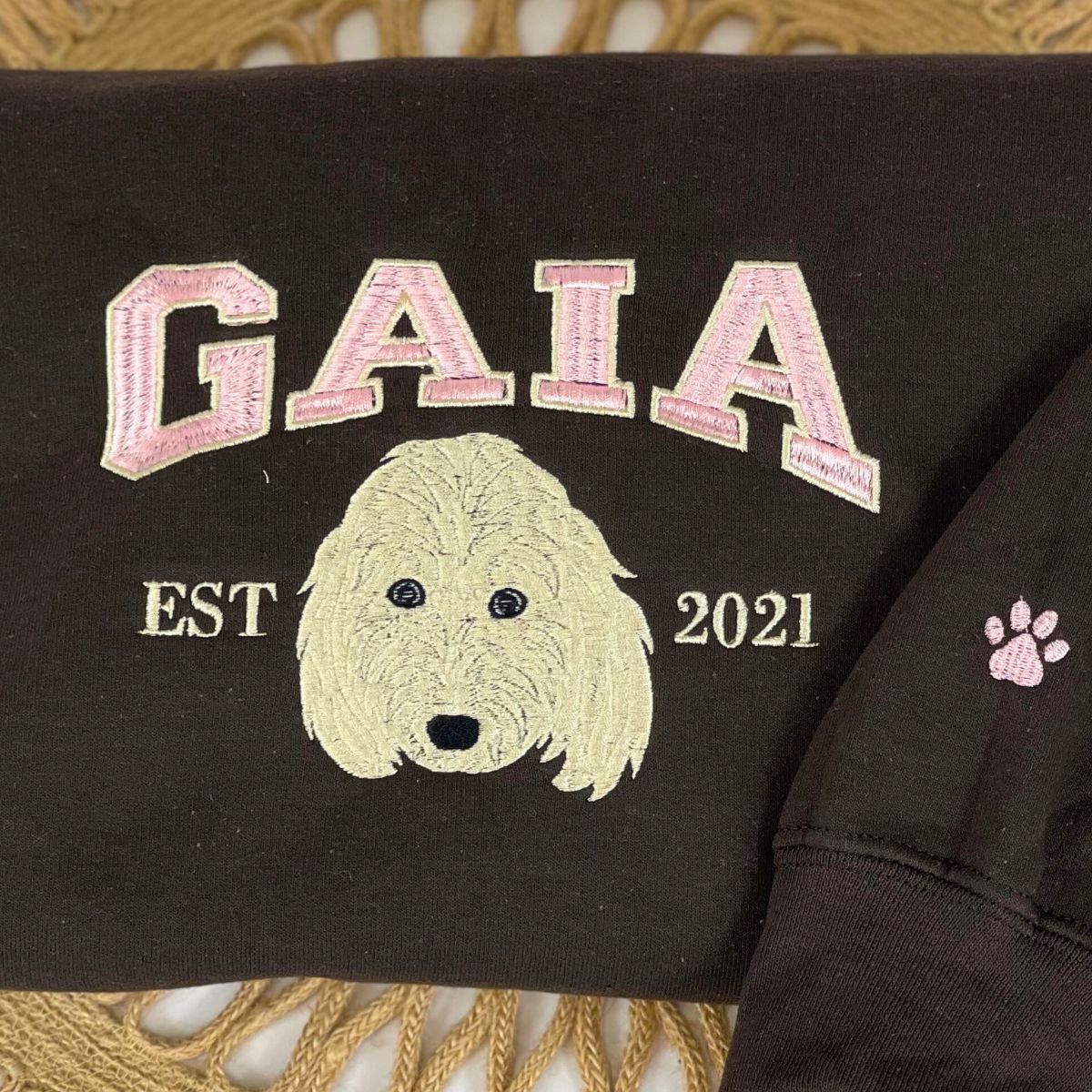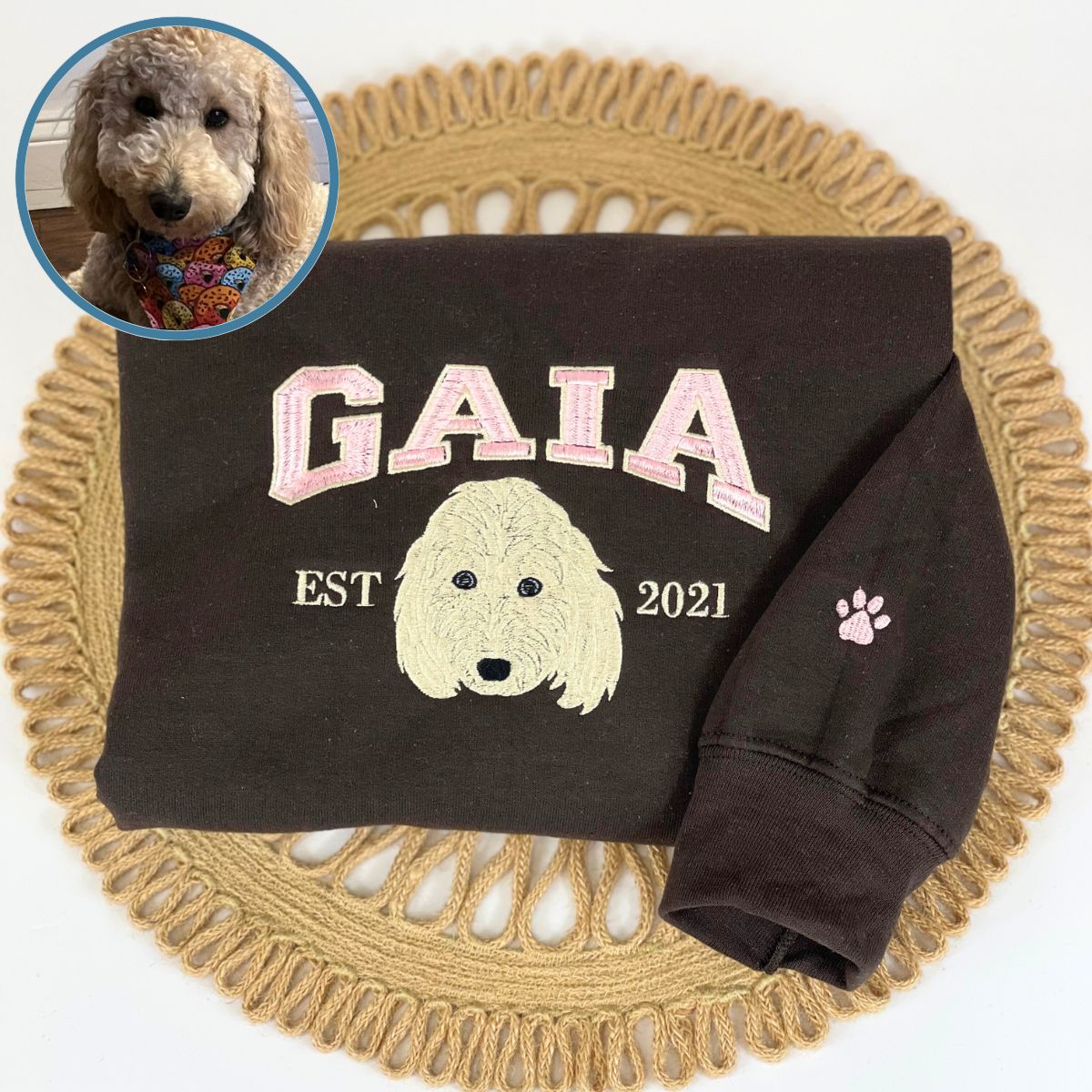 Custom Full-Color Varsity Dog Face Embroidered Sweatshirt