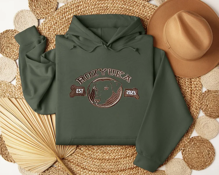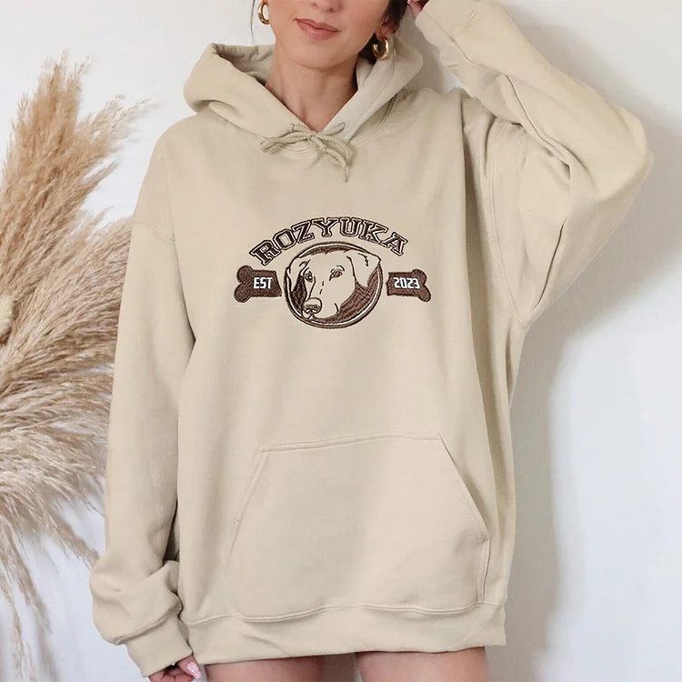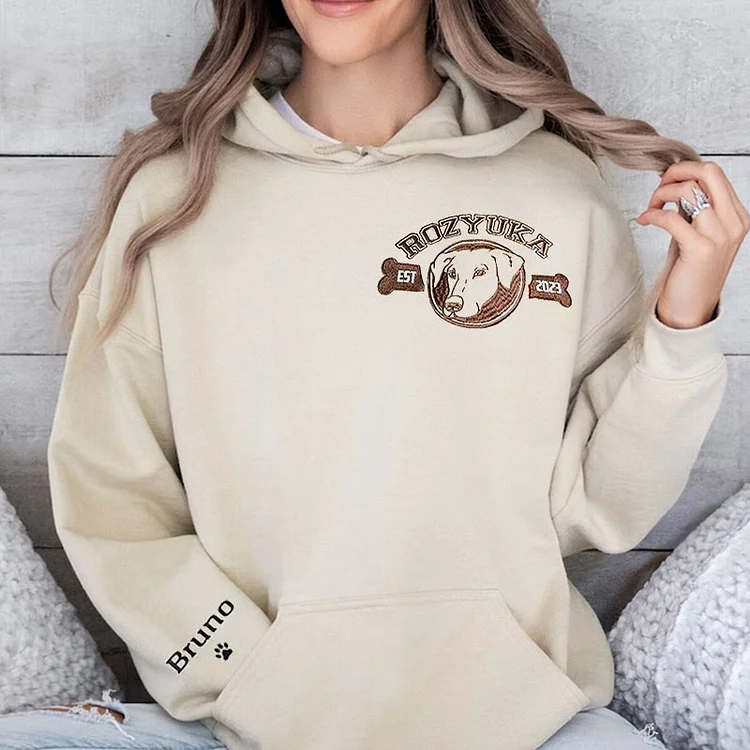 Embroidered Custom Pet with Name, Custom Pet Portrait Hoodie Crewneck