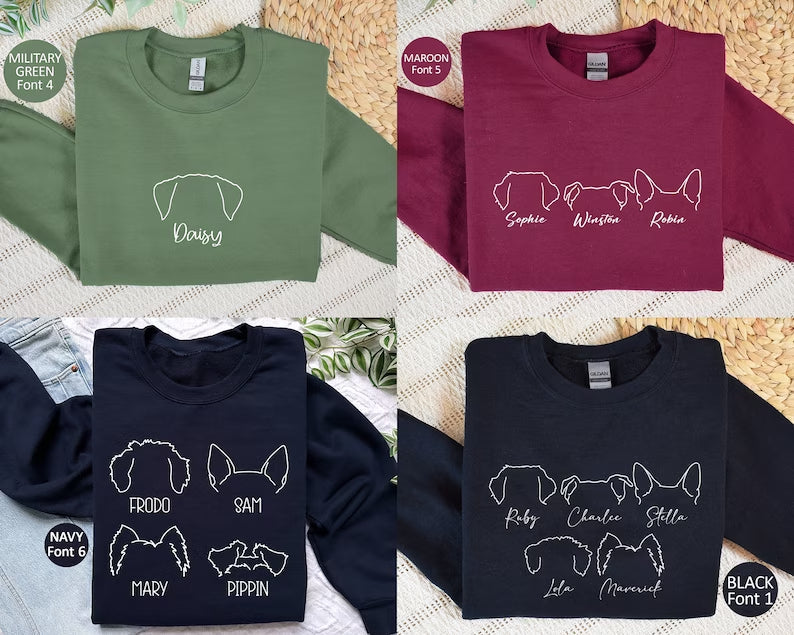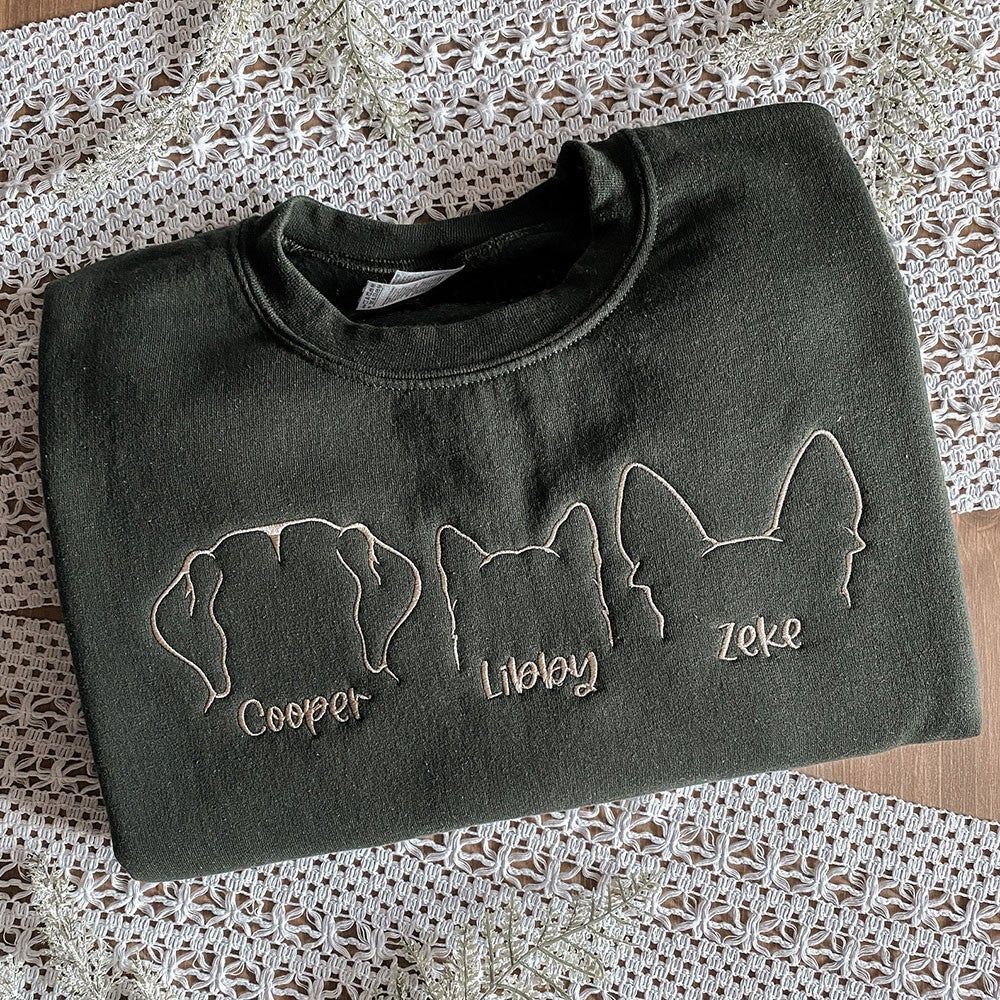 Embroidered Pet Ear Outline Sweatshirt With Names