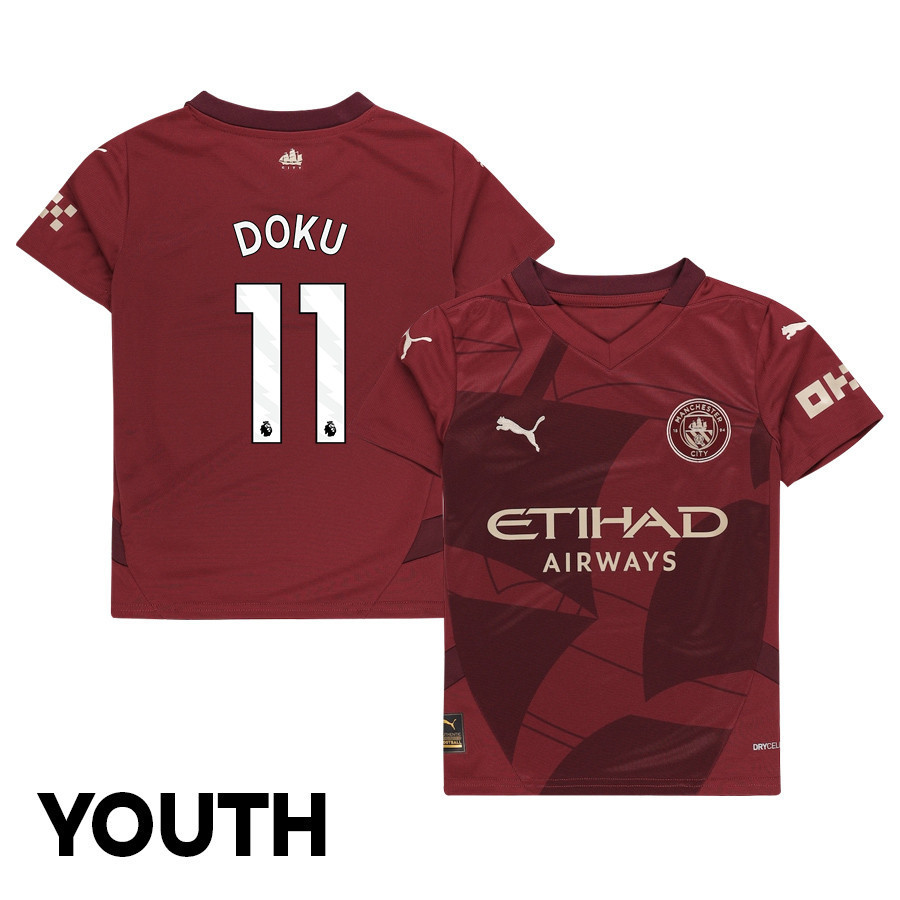 Jeremy Doku 11 Manchester City 2024/25 Third YOUTH Jersey – Burgundy