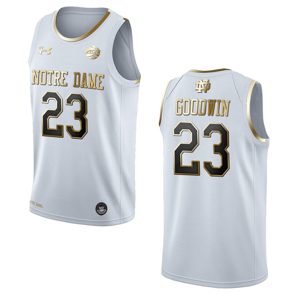 Men’s Notre Dame Fighting Irish #23 Dane Goodwin NCAA Golden Edition Jersey – White